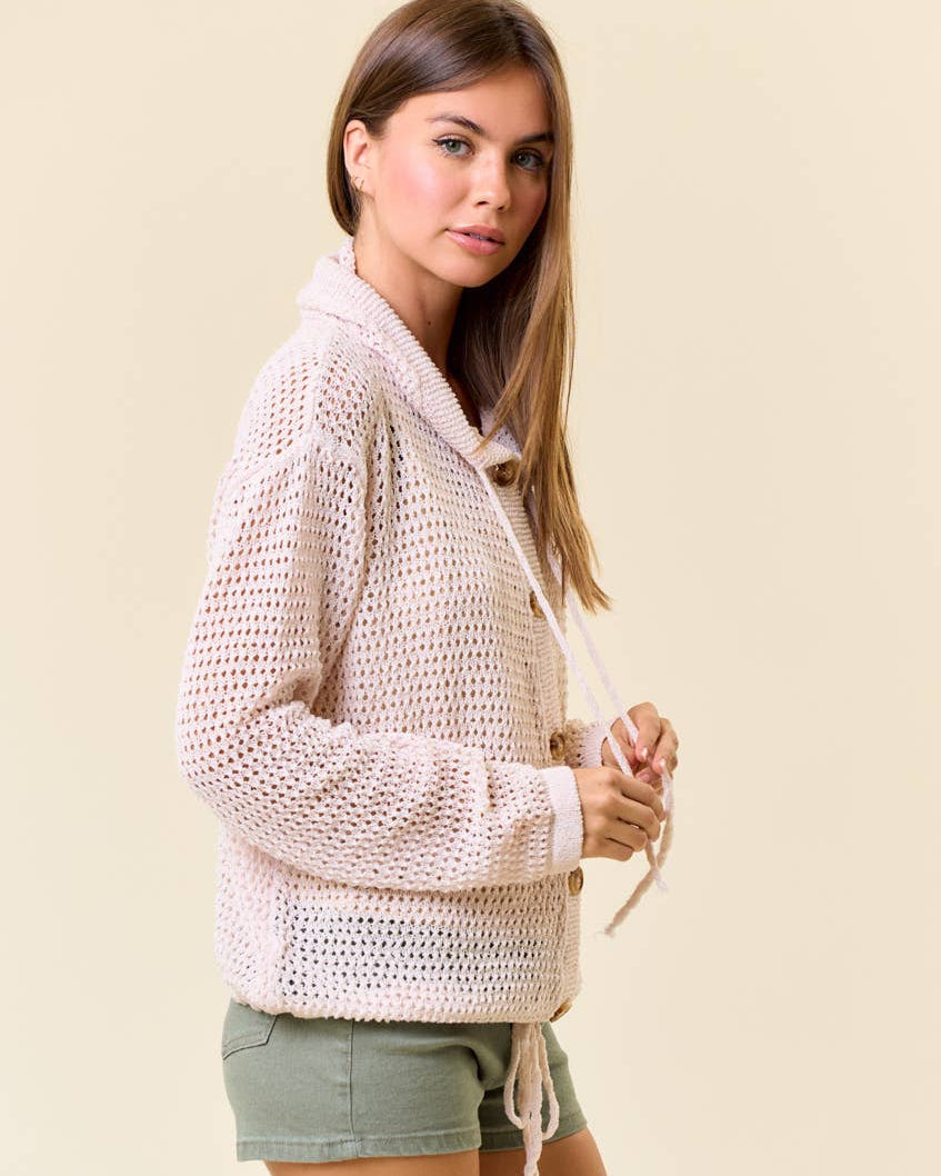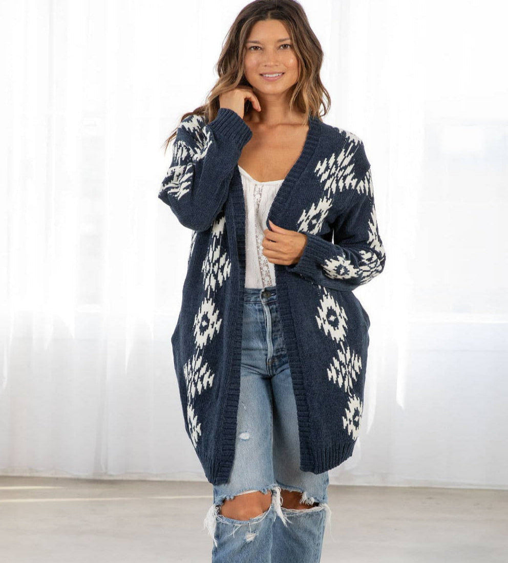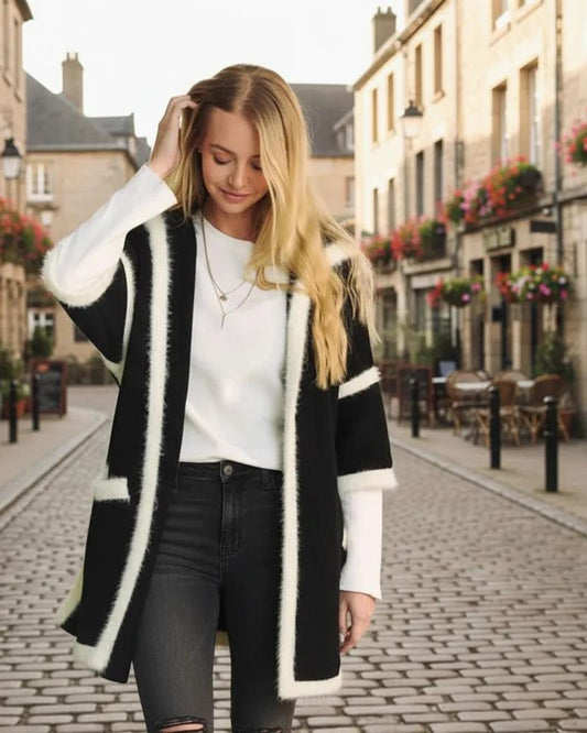 Davi & Dani Fuzzy Trim Open Front Loose Fit Cardigan
